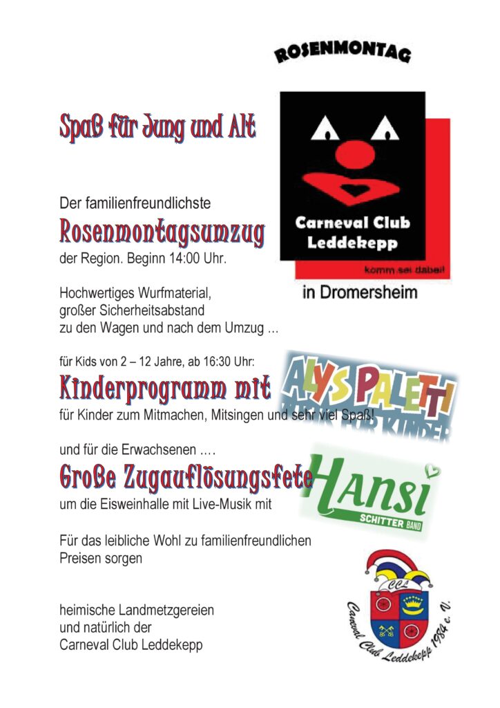 Nähere Infos unter: https://ccl-dromersheim.de/strassenfastnacht/